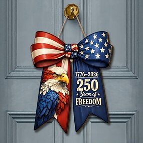 Yhdysvaltojen 250-vuotisjuhlan puinen kyltti, isänmaallinen itsenäisyyspäivän oven roikkuva koriste, Amerikan lipun maalaistalon seinälaatta, muistopäivän 4. heinäkuuta kodin kuistin koristelu