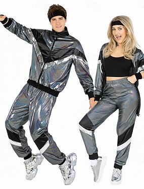Retro / vintage 1980 luku Hip Hop Asut Tarvikesarja Urheiluasut lisävarusteiden kanssa Pitkähihainen Disko Naamiaispuku Miesten Naisten Karnevaali puku Halloween Karnevaali Uusi vuosi Pride-paraati