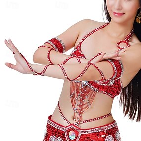 Samba Lisävarusteet Punaiset Paljetti Helmillä varustetut Vatsatanssin Käsivarret Lisävarusteet esityspuku
