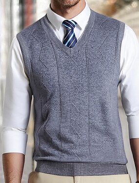 Miesten Neulepusero Mekko villapaita Liivi Neulottu villapaita Joustin Neuloa Tavalliset topit Kudottu V kaula-aukko Arki-asut Deitti Vaatetus Syksy Talvi Vihreä Vaalean harmaa S M L