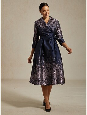 Naisten Midimekko Kotelomekko Tyylikäs Syntymäpäivä Kukka 3/4 hiha Paitapuserokaula-aukko Laivaston sininen