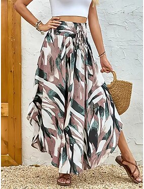Naisten Lomahame Tyylikäs Böömi Muoti Vapaa-aika Maxi Keski vyötärö Hameet Kuvitettu Geometrinen Kurenauha Joustava vyötärö Epäsäännöllinen helma Mikrojoustava Päivittäin Loma Tumman keltainen Tumma