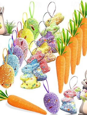 18 kpl pääsiäismunakoristeita ja porkkanoiden roikkuvia koristeita värikkäitä vaahtomuovia, pääsiäispupun roikkuvia koristeita, ensiluokkaisia vaahtomuovia, glitter-keinotekoisia porkkanoita,