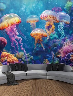 Mustavaloiset tapestrit glow in the dark glow juhla UV reaktiivinen meduusa trippy sumuinen luonto maisema ripustettava tapestri seinätaide mural olohuoneeseen makuuhuoneeseen