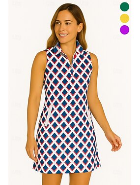 Naisten Geometrinen Tennismekko golf mekko Hihaton mekko Hihaton Vetoketju UV suoja Elastinen Hengittävä Tennis Golf Sulkapallo Pikeepaita Hameet Keltainen Sininen Purppura Tennisvaatteet