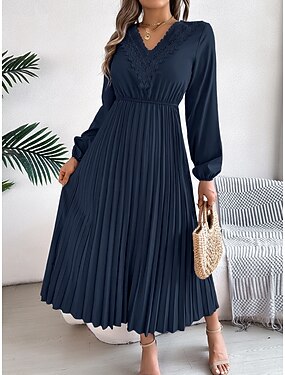 Naisten Maksimekko A linjainen mekko Vapaa-aika Päivittäin Normaali Tavallinen Pitkähihainen V kaula-aukko Viini Laivaston sininen Vaalean ruskea Sininen Kevät Syksy Talvi