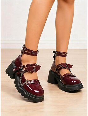 naisten viininpunaiset lakkanahkaiset korolliset Mary Jane -avokkaat – goottilaiset soljelliset paksut korkokengät halloweenjuhliin ja cosplay-asuihin