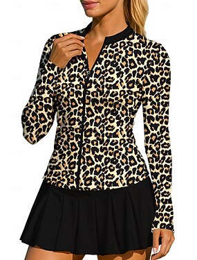 Naisten Eläin Leopardi Yläosat Pusero Urheilupaita Poolopaita Pitkähihainen Vetoketju Perinteinen Urheilullinen UPF50+ UV-vastustuskykyinen Kouluttaja UV suoja Erittäin elastinen Pilates Lentopallo