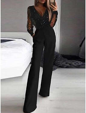 Naisten Normaali Haalarit Tyylikäs Yhtenäinen väri Pitkähihainen V kaula-aukko Tilkkutäkki Silmukka Klubi Katu Normaali Musta Kesä