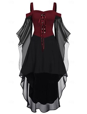 Punk & goottilainen Mekot Kello noita Gootti tyttö Olkaimeton Epäsymmetrinen helma Naamiaispuku Naisten Halloween Karnevaali Suoritus Juhla Aikuiset Leninki
