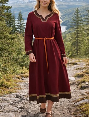 Retro / vintage Keskiaika Renessanssi Kokopitkä Mekot Pitkähihainen noita Viikinki Naamiaispuku Naisten Fantasia Halloween Karnevaali Juhla Renessanssin messut LARP Aikuiset Leninki Kaikki vuodenajat
