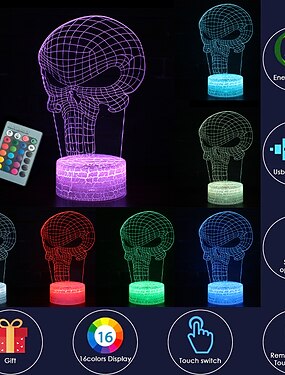 Puisher Skull 3D yövalo lamppu halloween lahja koriste lapsille 16 väriä kaukosäätimellä led illuusio lamppu huoneen sisustus