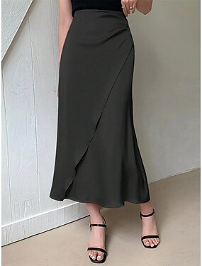 Naisten Tyylikäs Muoti Maxi Keski vyötärö Hameet Tavallinen Rypytetty Mikrojoustava Päivittäin Katu Musta Kevät Polyesteri