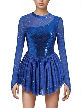 Taitoluistelupuku Naisten Luistimet Hameet Laivasto Tilkkutäkki Avoin selkä Elastinen Kouluts Kilpailu Luisteluasu Klassinen Kristalli / Strassi Pitkähihainen Luistelu Taitoluistelu