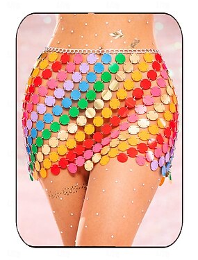naiset paljetti sateenkaari ketjuposti minihame kimaltelevia pisteitä vatsatanssi hip hameet rave vyötäröketju