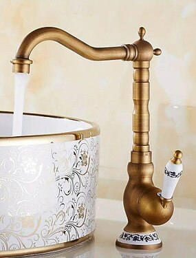 Nykyaikainen Antiikki Kolmiosainen Laajallle ulottuva Messinkiventtiili Kaksi kahvaa kolme reikää Antiikkikupari , Kylpyhuone Sink hana