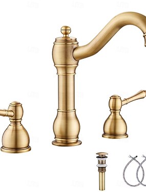 kylpyhuoneen pesuallashana - laajalle levinnyt antiikki messinki laajalle levinnyt kaksi kahvaa kolme reikäkylpyhanat