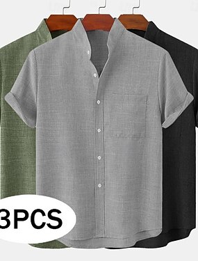Miesten Pellava paita Kesä paita Rento paita Band kauluspaita Tavallinen Kausaliteetti Hiekkaranta Musta+harmaa+vihreä Musta+valkoinen+harmaa musta+valkoinen+vihreä musta+khaki+vihreä Lyhythihainen