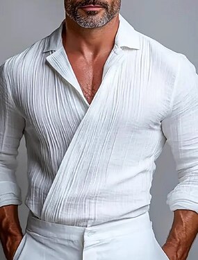 Miesten Paita Pukupaita Ei-rautapaita Button Up paita Yhtenäinen väri Päivittäin liiketoiminta Musta Valkoinen Harmaa Pitkähihainen Sänkyjen avaus Kaikki vuodenajat Vaatetus Laskostettu