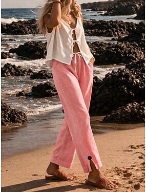 Naisten Keinopuuvillainen pellava Housut Kesähousut Muoti Katutyyli Täyspitkä Luonnollinen Tavallinen Röyhelö Joustava vyötärö Ulkoilu Mukava ulko- Loma Bile Appelsiinin punainen Viini Harmaa Musta