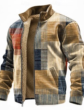Miesten Geometrinen Skottiruutukuvio Fleece Takki College Muoti Päivittäin Yksinkertainen Vapaa-aika Stand-kaula-aukko Vetoketju ulko- Loma Lahja Bile Sininen Ruskea Apila Harmaa Tasku Edess
