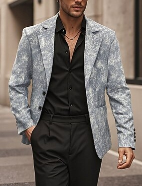 Miesten Bleiseri liiketoiminta Cocktailjuhla Hääjuhla Muoti Vapaa-aika Kevät Syksy Polyesteri Graafiset tulosteet Tasku Napit Mukava Yksirivinen Bleiseri Harmaa