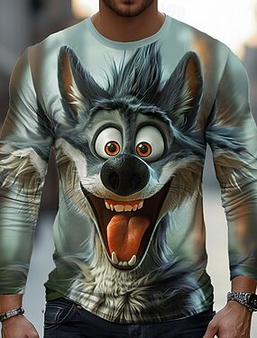Miesten Susi 3D T-paita Pitkähihainen T-paita 3D-tulostus Tiukka pyöreä kaula-aukko Paita Muoti Perus Katu Kausaliteetti Päivittäin Sininen 1# Sininen Harmaa Kesä Kevät Vaatetus S M L XL XXL XXXL