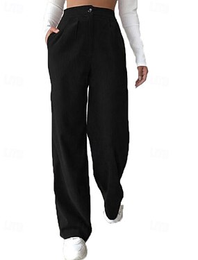 Naisten Leveä reisi Housut Katutyyli Vapaa-aika Täyspitkä Luonnollinen Tavallinen Tasku Joustava vyötärö Mukava Katu Pyhäpäivä Viikonloppu Tumma harmaa Hyasintti Musta Ruskea Syksy Normaali
