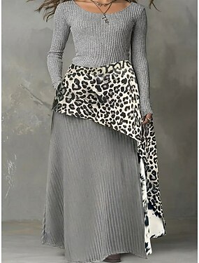Womens flaxikankaan kaltainen keinokuituinen maksimekko shift-mekko kesämekko rento jokapäiväinen löysä istuvuus yksivärinen pitkähihaisen kauluskangas harmaa kesä kevät syksy
