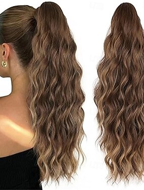 kynsipidike poninhäntäpidennys 18 tuuman synteettistä kuitua oleva poninhäntäpidennys pitkä, laineikas kihara poninhäntäpidennys pörröinen, luonnollinen näköinen naisille päivittäiseen käyttöön
