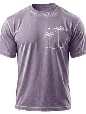 Miesten Havaiji Kookospalmu T-paita Mineraalipesupaita Lyhythihainen T-paita Happopesu Tiukka pyöreä kaula-aukko Paita Loma Vintage retro Kausaliteetti Hiekkaranta Matkailu Sininen Purppura Harmaa