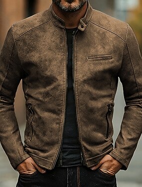 Miesten Faux mokkanahka takki Tuulitakki Ruskea mokkanahka takki Kausaliteetti Rento / arki Tuulitakki Tasku Perus Syksy Talvi 봄 & Syksy Yhtenäinen väri Vintage Muoti Stand-kaula-aukko Normaali