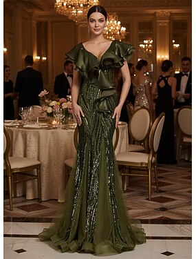 Trumpetti merenneito Kokopitkä Helmillä koristeltu Muodollinen mekko Morsiamen äidin mekko Tanssiaismekot Iltapuku Quinceanera mekot Ball Gown Tyylikäs Hihaton V kaula-aukko Tanssiaiset Iltajuhlat