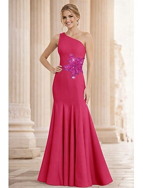 A-linja Muotoonommeltu Kokopitkä Iltapuku Muodollinen mekko Tyylikäs Päivittäin Rento/päivähäät Hihaton Yksiolkaiminen Puutarhajuhlat Häät Stretch Crepe kanssa Helmillä koristeltu Applikaatiot