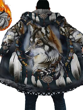 Miesten Eläin Susi Graafiset tulosteet Talvitakki Fleecetakki Takki Pidä lämpimänä Mukava Hengittävä Muoti Katutyyli Urheilu Urheilu ja ulkoilu Arki-asut Bile Vetoketju Tasku Painettu Syystalvi