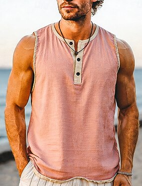 Miesten Henley-paita Liivin toppi Pellava Tankkitoppi Hihaton paita Hihaton Henley Kesä Tavallinen Muoti Suunnittelija Boheemi Napit Loma Kausaliteetti Bile Musta Valkoinen Punastuvan vaaleanpunainen
