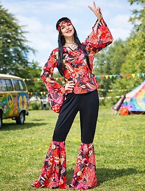 Setti Retro / vintage 1970 luku Pusero / hame Housut Päähine Pitkähihainen Hippi Disko Paisley-kuvio Naamiaispuku Naisten musiikkifestivaali Retro-teemaiset juhlat Aikuiset Pusero Housut Päähine