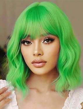 Carnival-peruukki 2026 Vihreä Suora Bob Lyhyt Synteettinen festivaaliperuukki Mardi Gras Paraati Cosplay-asun hiukset varten Naisten
