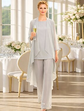 Housupuku 3 -osainen puku Kokopitkä Morsiammen äidin asu Hihaton Kaulavene Tyylikäs Plus-koko Huivi sisältyy toimitukseen Häävieras Sifonki Takki Mekot kanssa Solid Color
