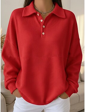 Naisten Pullover-huppari Napit Tavallinen Vapaa-aika Pitkähihainen Kauluskäänne Tavalliset topit Katu Arkikäyttö Sininen Valkoinen Punastuvan vaaleanpunainen Tumma vaaleanpunainen Purppura Kevät