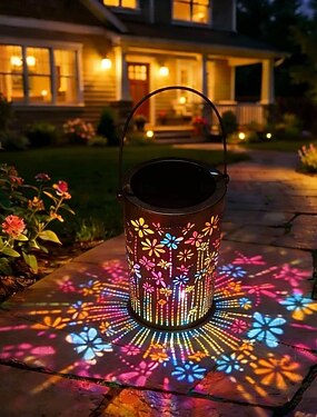 Ulkokäyttöön tarkoitettu aurinkoenergialla toimiva vedenpitävä metallinen ontto värikäs sudenkorentoprojektioinen riippuvalaisin, koristeellinen LED-valo puutarhaan, pihalle, polulle, nurmikolle,