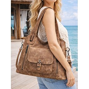 naisten vintage-tekonahkainen olkalaukku, tilava muunnettava käsilaukku, jossa yläkahva ja olkahihna, retrohenkinen rento käsilaukku naisille, täydellinen päivittäiseen käyttöön, lomalle ja matkoille