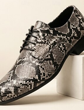 Miesten valkoiset mustat käärmeennahkakuvioiset Oxford-kengät, nauhalliset ja muodikkaat juhlakengät, näyttävät jalkineet häihin, juhliin, tanssiaisiin, lavaesityksiin ja rohkeaan iltapukuun