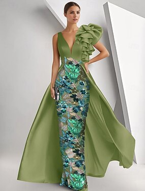 Tuubi Kokopitkä Helmillä koristeltu Muodollinen mekko Morsiamen äidin mekko Iltapuku Tanssiaispuku hameen päällä Muodollinen mekko Tyylikäs Kimaltava Kukka-aihe Hihaton V kaula-aukko Häät Muodollinen