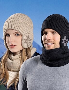 talvipipo huivisetti lämmin neulottu myssy fleecevuorillinen kauluri naisten miesten ulkoilu pyöräily korvasuojaimet kallohattu kylmän sään lämpötarvikkeet