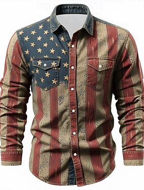 Miesten Yhdysvaltain Yhdysvaltain lippu Patriotismi Paita Länsimainen paita Pitkähihainen Vintage retro Kausaliteetti Pyhäpäivä Työasut Kevät Syksy Sänkyjen avaus Kaksi etutaskua Pellava kuin paita