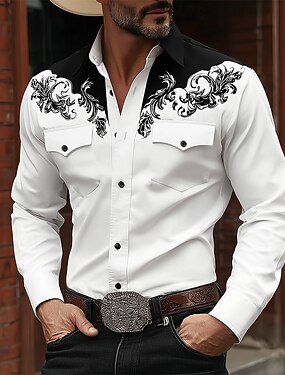 Miesten 3D-tulostus Kukkapainatus Kukat Länsimainen paita Button Up paita Cowboy paita Pitkähihainen Vintage retro ulko- Pyhäpäivä Kevät Syksy Sänkyjen avaus kauluspaidat Kaksi etutaskua Punastuvan