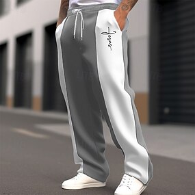 Miesten Veryttelyhousut Housut Suorat lenkkeilyhousut Kurenauha Tasku Joustava vyötärö Väripalikka Lippukuvio Mukavuus Joulu Urheilu ja ulkoilu Muoti Vapaa-aika Musta Rubiini Mikrojoustava