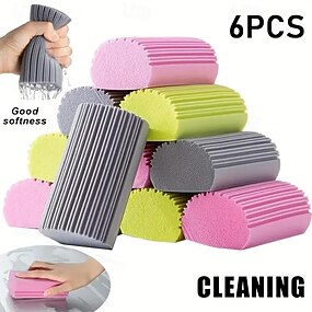 6 kpl maagisia pölynpuhdistussieniä, PVA-sieniä kaihtimien, lasin, jalkalistojen, tuuletusaukkojen, kaiteiden ja ikkunoiden pyyhkimiseen, satunnaisia värejä