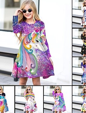 lasten tyttöjen yksisarvinen 3d-printti t-paita t-paita pitkähihainen eläinprintti sininen lasten topit syksyllä aktiivinen koulu arkikäyttö normaali istuvuus 4-12v.